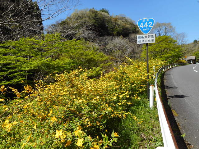 神角寺渓谷沿いのやまぶきも見頃を迎えています。