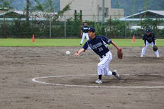 ソフトボールは、別府市野口原球場で行われ、1回戦は臼杵市議会と対戦し、14対8で勝利しました。