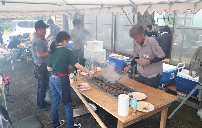 参加者は、豊後牛の炭火焼きや地元産野菜たっぷりの豚汁などに舌鼓を打ちながら、豊後家歌八師匠の落語と上坂ゆみえさんの歌謡ショーを楽しみました。