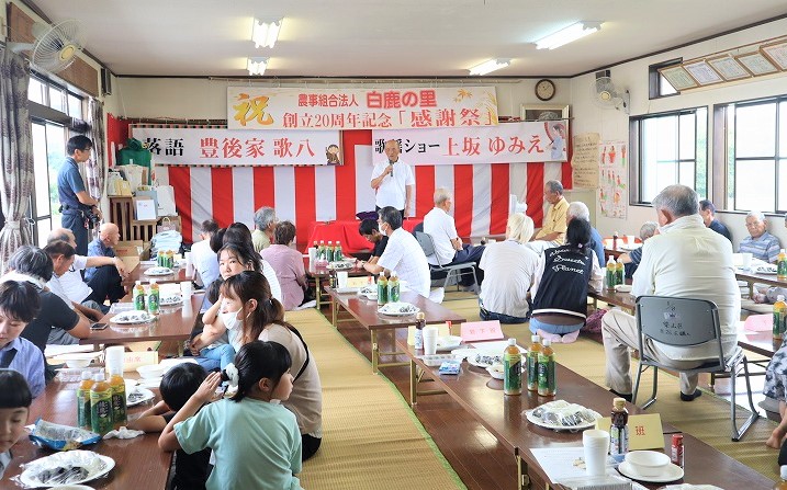 令和7年9月28日(日曜日)、千歳町・柴山公民館で、農事組合法人白鹿の里・創立20周年記念「感謝祭」が開催されました。