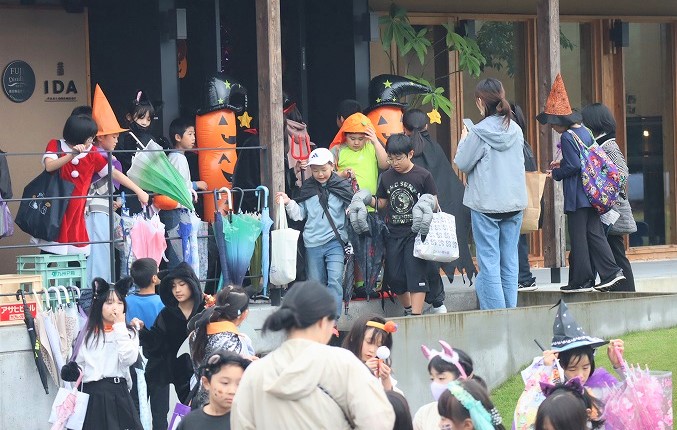 児童らは、それぞれ魔法使いやおばけなどのハロウィン衣装に身を包み、化粧をして、千歳支所を出発して千歳町商店街を練り歩きました。