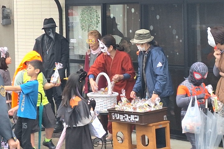 行く先々で熱烈な歓迎を受けた児童らは、大人の心を温める「かわいい魔法」を振りまいて、多数のお菓子を手にしました。