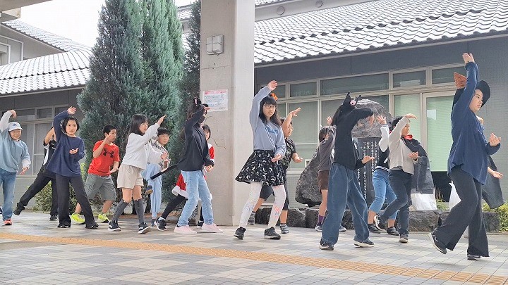 最後は千歳支所にゴールして、待ち受けていた住民の皆さんの前で、お菓子のお礼にダンスを披露しました。