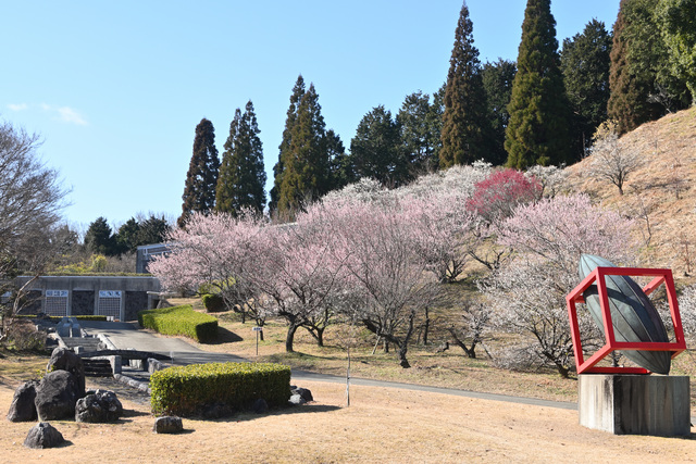彫刻作品と梅の花が織りなす、この時期だけの景色をぜひお楽しみください。