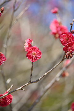 朝倉文夫記念館前の梅園では、現在、赤や白の梅の花が美しく咲き誇り、園内はほのかな香りに包まれています。