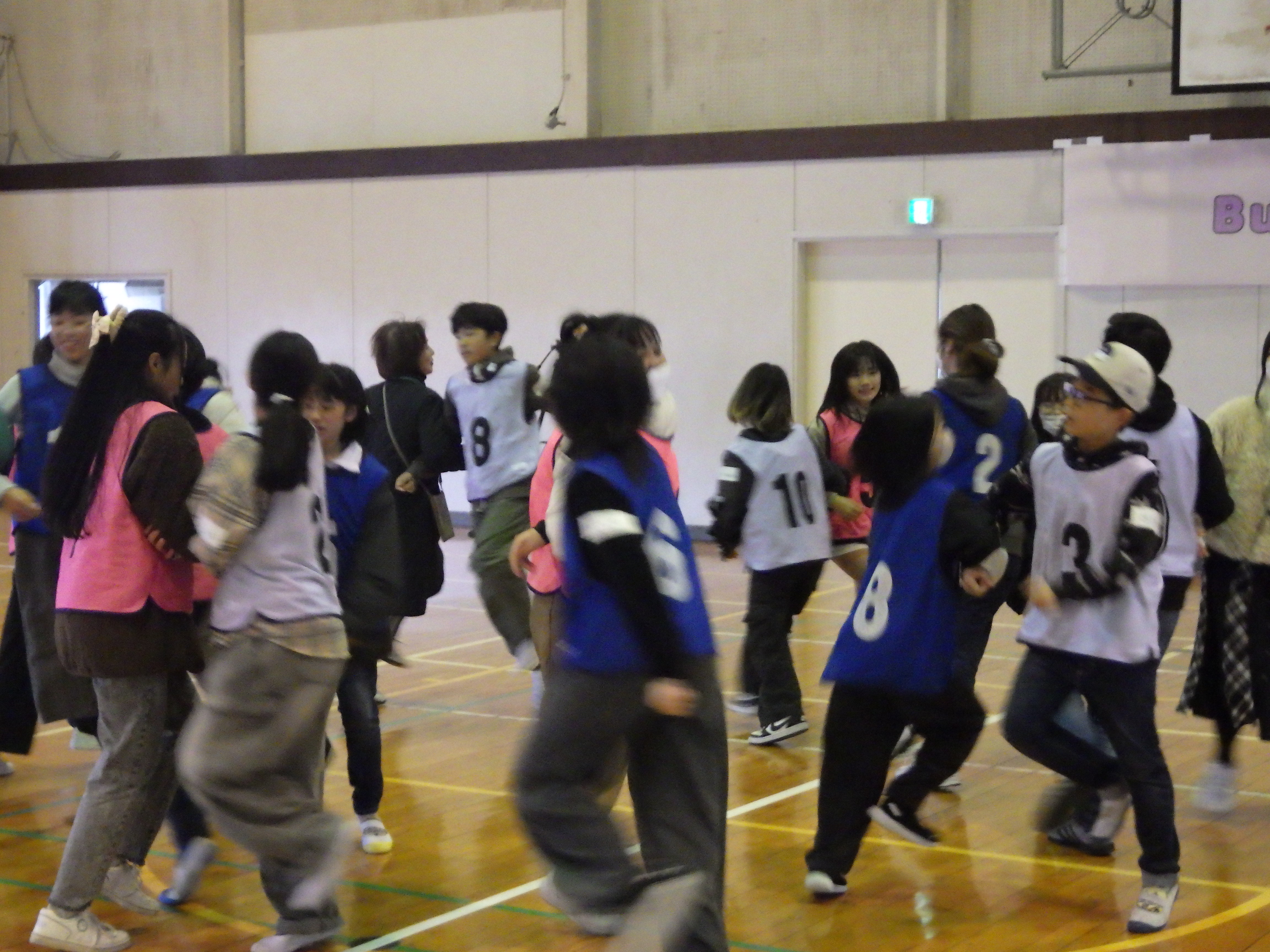 フォークダンスの雰囲気を引き継いで、「ドッチビー」と「チーム鬼ごっご」で大盛り上がり!!チーム対抗戦を行いました。友達にもう一度ルールの説明をしてあげたり、作戦会議をするなど、みんな積極的!笑顔で正々堂々と戦う姿がとても素敵でした(*^^*)
