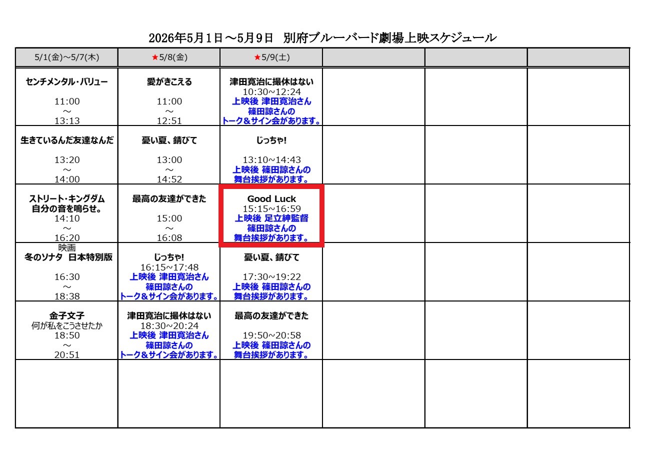 当日は是非別府ブルーバード劇場へ足をお運び下さい。