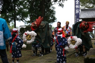 清川町雨堤から明治12年(1879)に伝授された御嶽流の獅子舞。