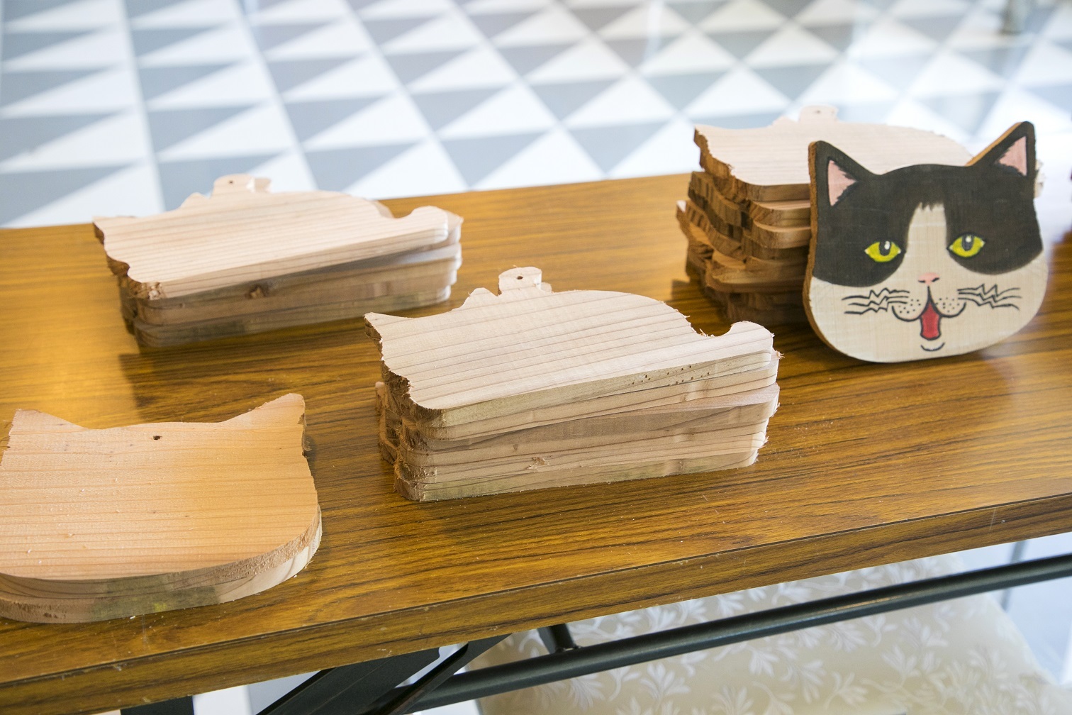 「巨大寝ころび招き猫」の制作者を含む、東京藝術大学の3名の方を講師に、3人が作ってくれた猫型の特製絵馬に自由に絵を描くというワークショップでした。