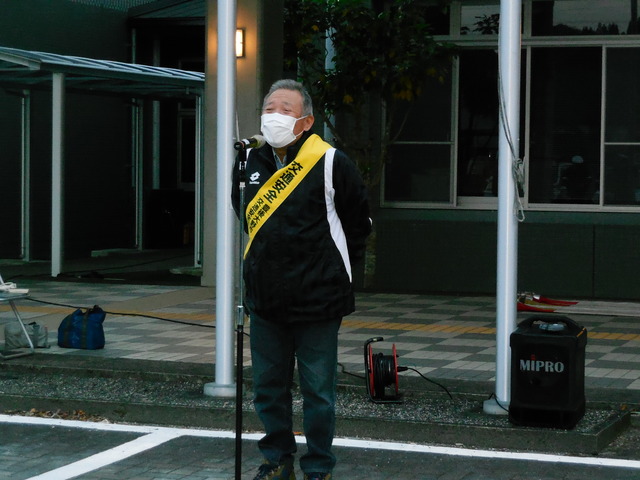 終りに千歳町の恵良啓治自治委員会長が「寒いので歩行者は縮こまっていて視界が狭かったり、着込んでいて動きが悪かったりします。暖かい車内にいるドライバーは思いやりと安全運転をお願いします」と地元を代表してあいさつをしました。