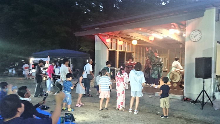 当日は、温見地域振興協議会の主催で、盆踊り大会が開催され、お盆に帰省された皆さんにも参加していただいて、神楽や盆踊りを楽しんでいただきました。