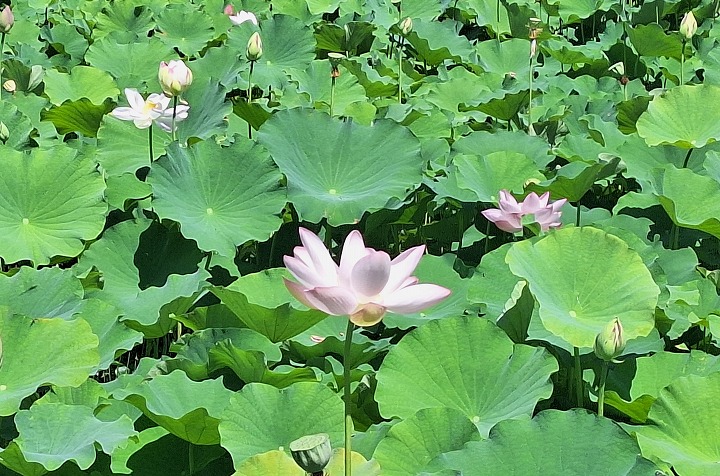 見頃は8月中旬までと予想されます。夜に閉じた花が再び開く午前中が見頃です。