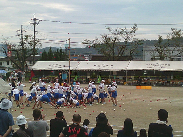 大玉を転がしてから玉入れです
